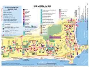 What route to cover? how long to walk? in what direction? All these answers can be found on the Ipanema Walking Tour Map in My Rio Travel Guide, the most updated, practical, and useful travel guide to Rio de Janeiro. Besides, on the Ipanema Map you can locate ATMs, restaurants and cafes, bars, nightclubs, exchange bureaus, recommended hotels, and the trendy beach spot.