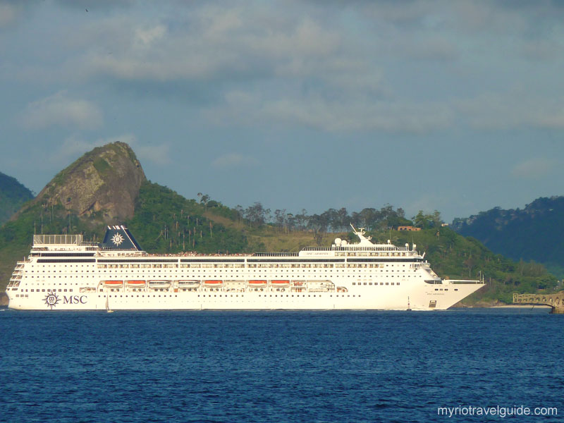 Cruise ship departure from Rio de Janeiro; viewed from Sugar Loaf