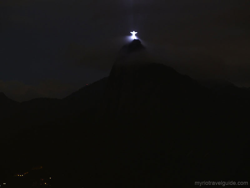 Christ the Redeemer statue at night seen from Urca Hill in Rio