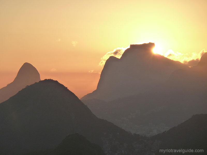 Sunset behind Gavea Stone; seen from Sugar Loaf in Rio de Janeiro
