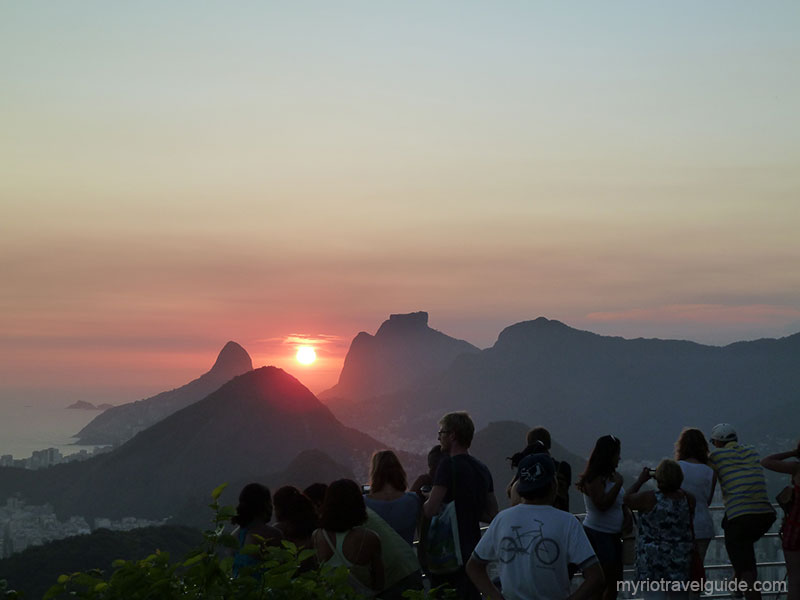 Visitors watching the sunset at the summit of Sugar Loaf