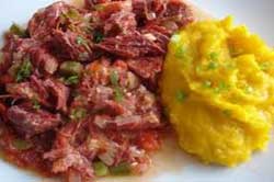 - – Carne Seca com abóbora: Jerked beef with pumpkin purée (and rice).